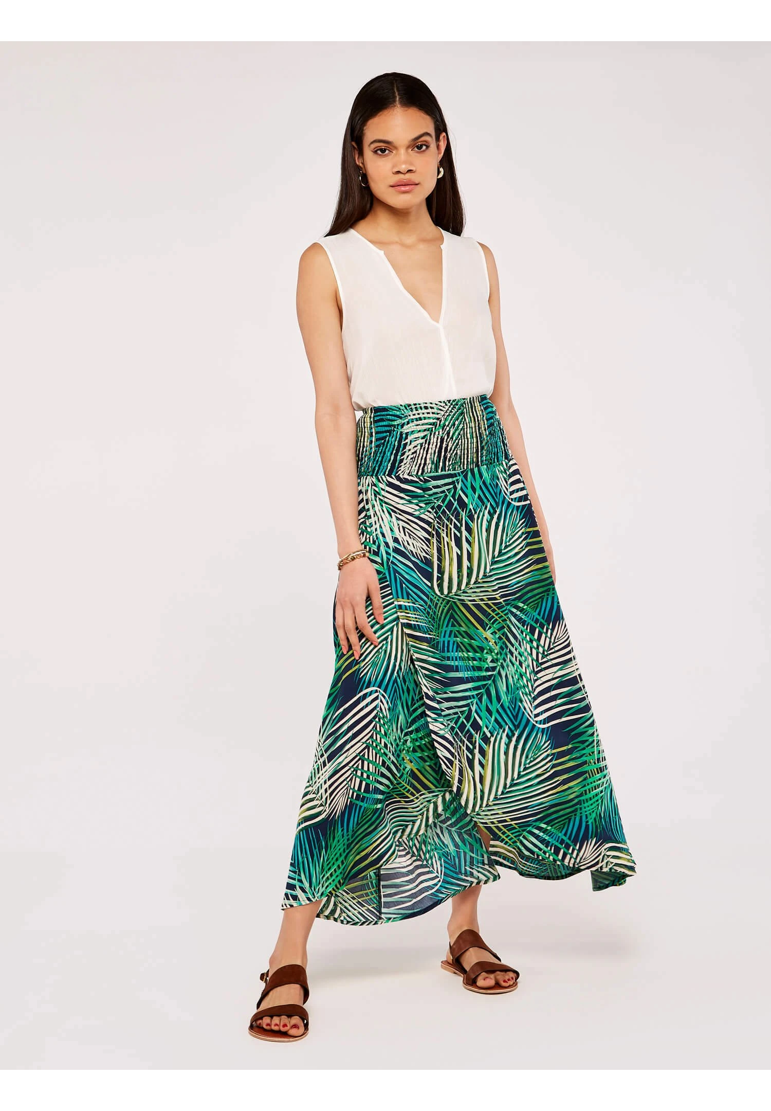 Apricot Tropical Leaf- Wikkelrok – Navy