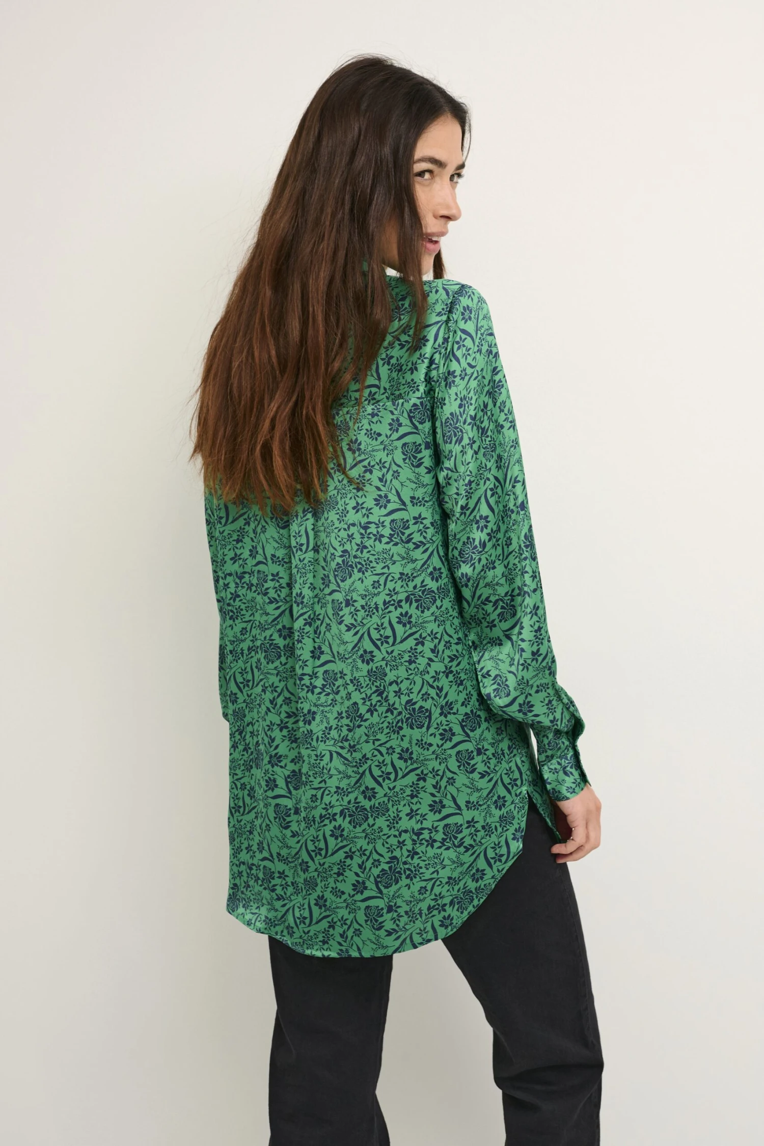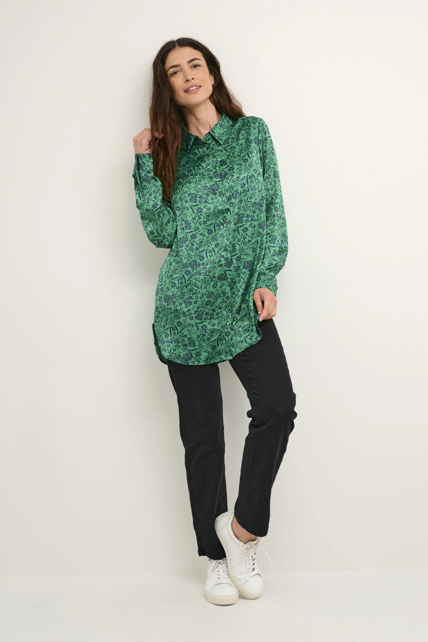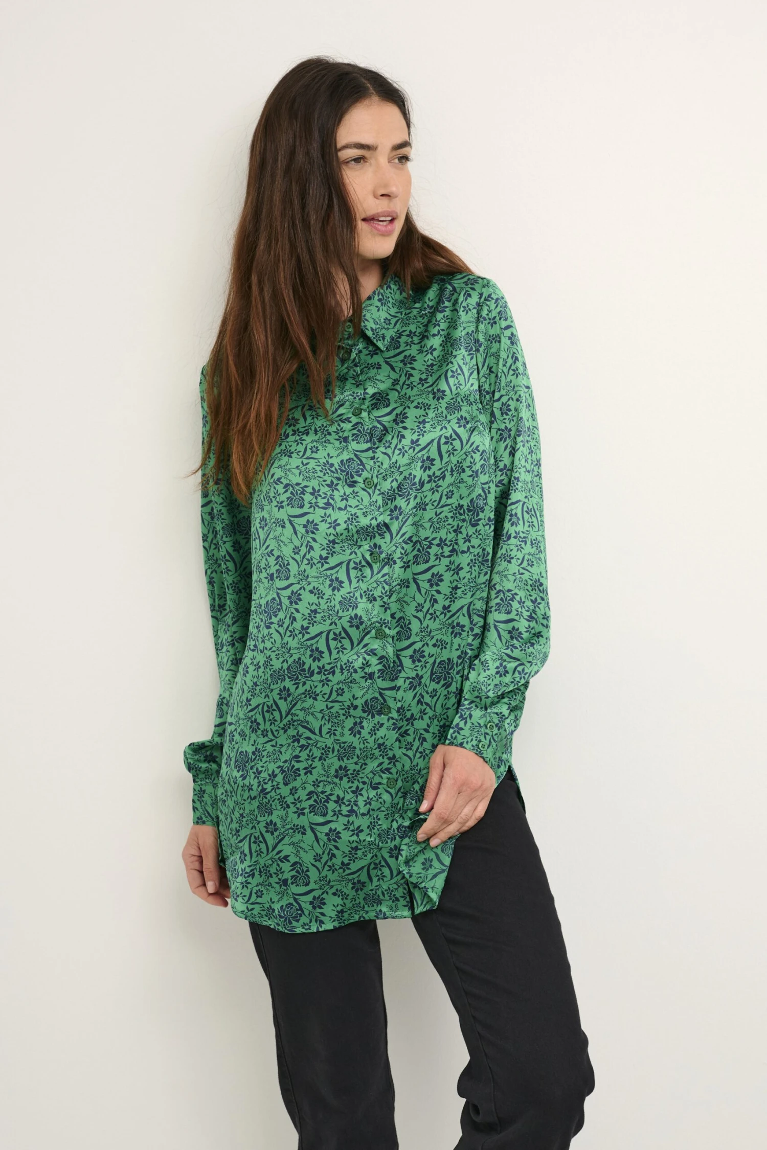Kaffe Bpfoelle Relaxed Shirt Tunic – Overhemdblouse – Green Midnight Flower Print