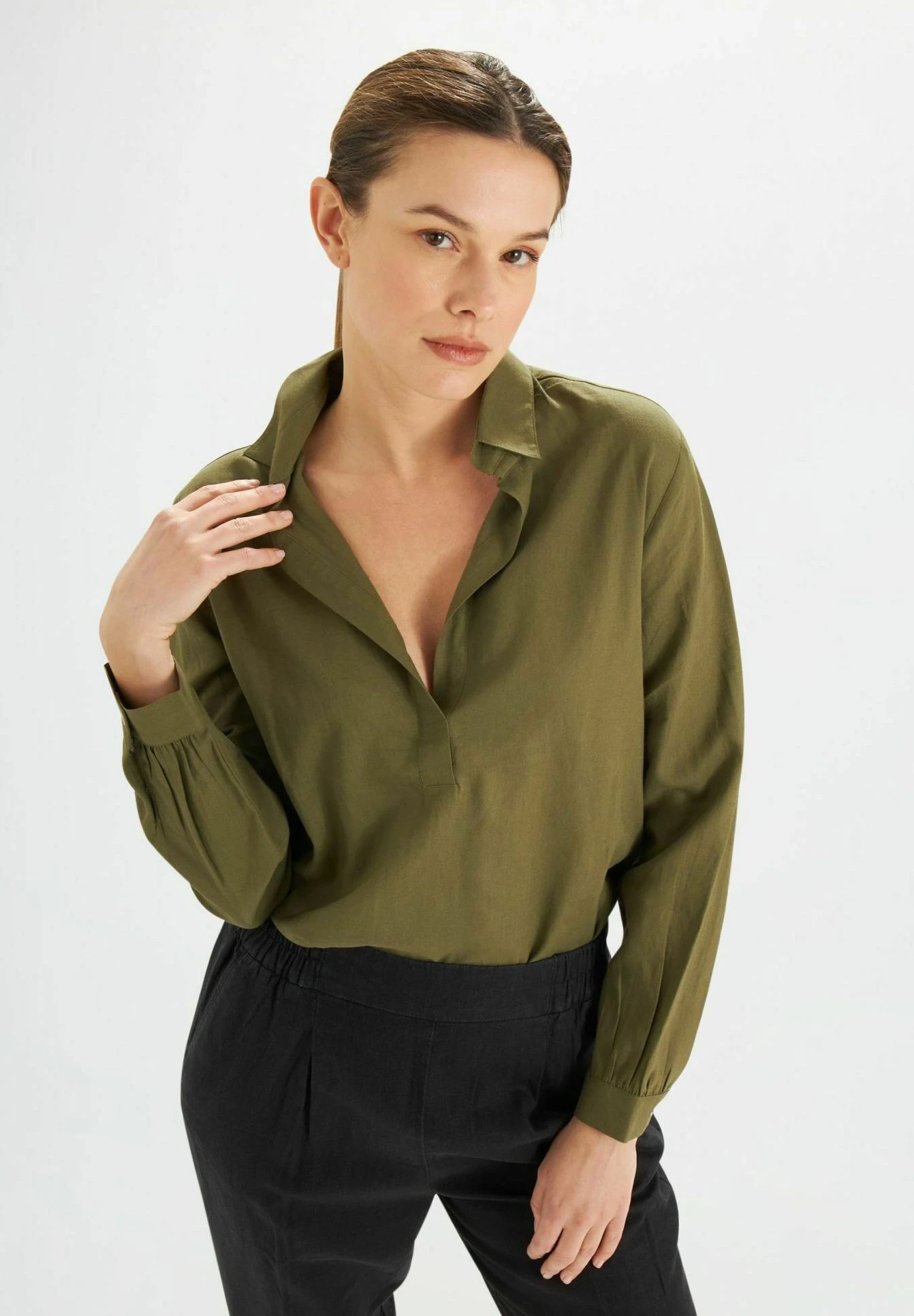 Long Sleeved Polo – Blouse – Verde Militare
