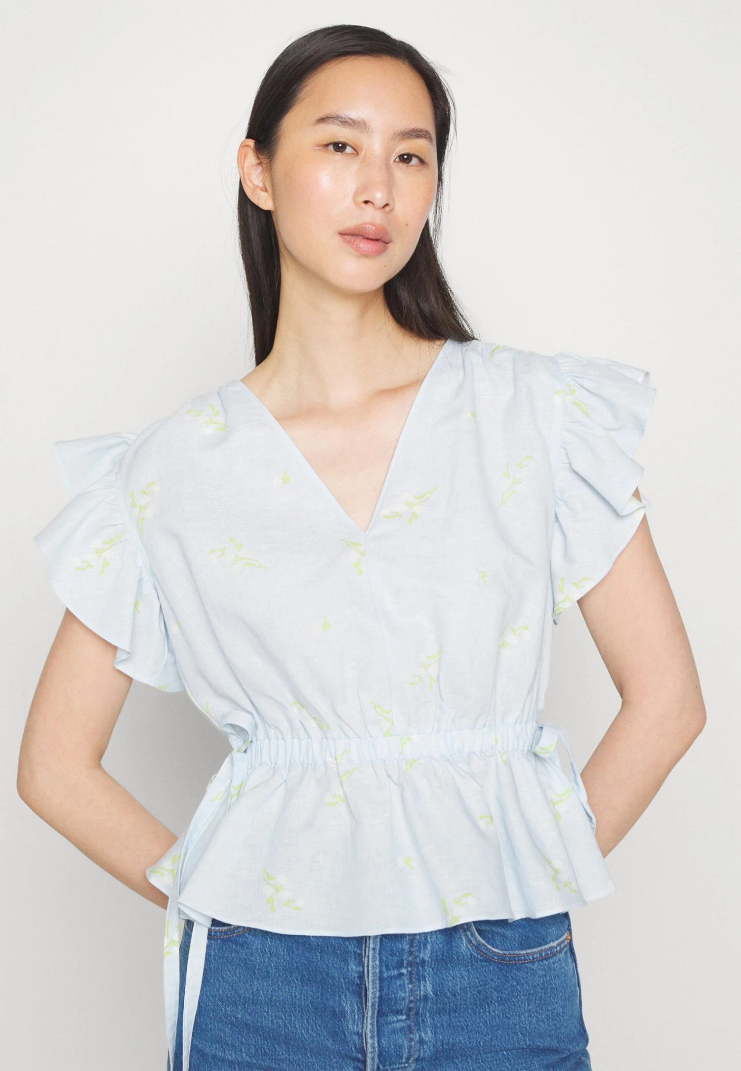 Marks & Spencer Frill Sleeve Top – Blouse – Blue