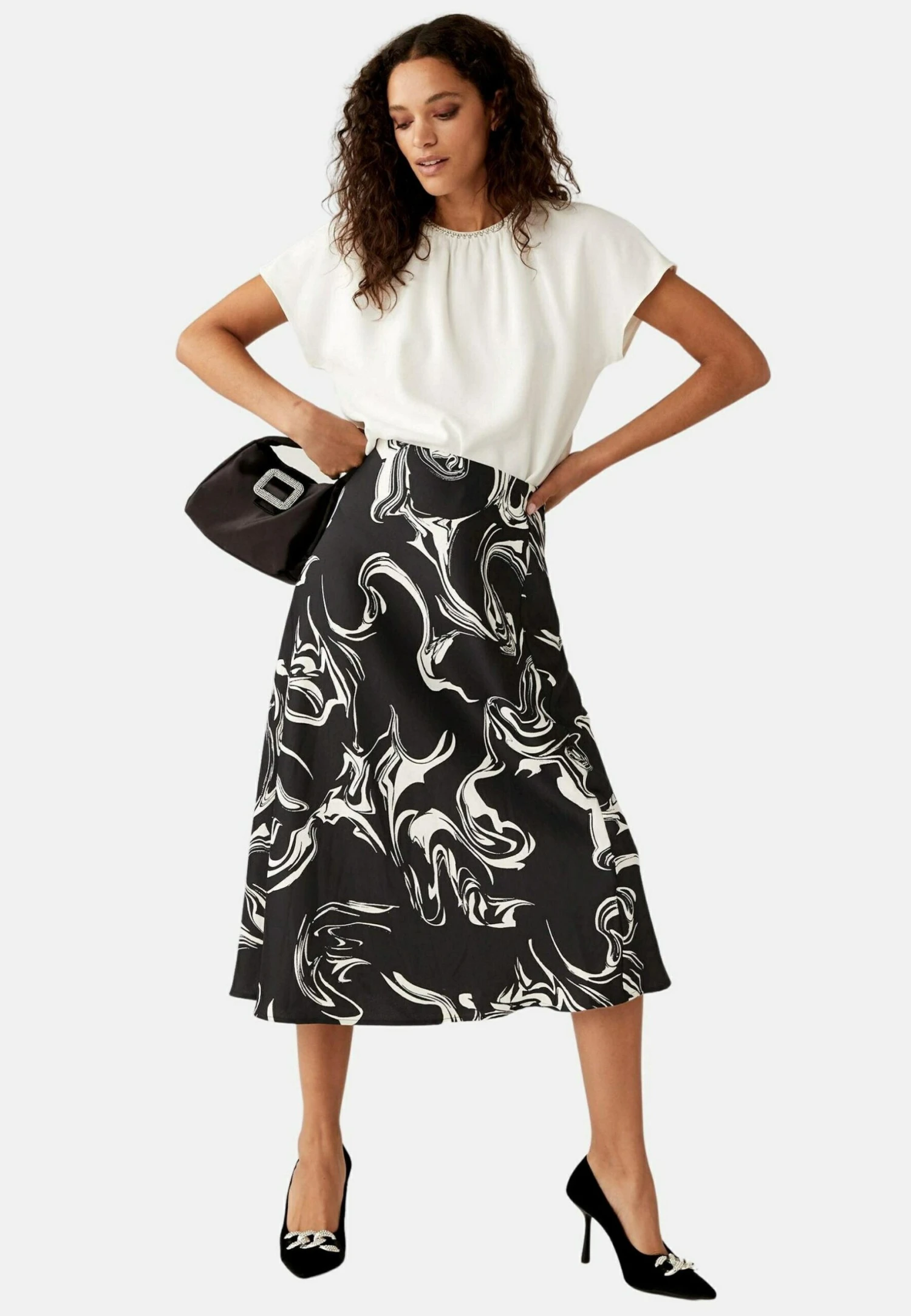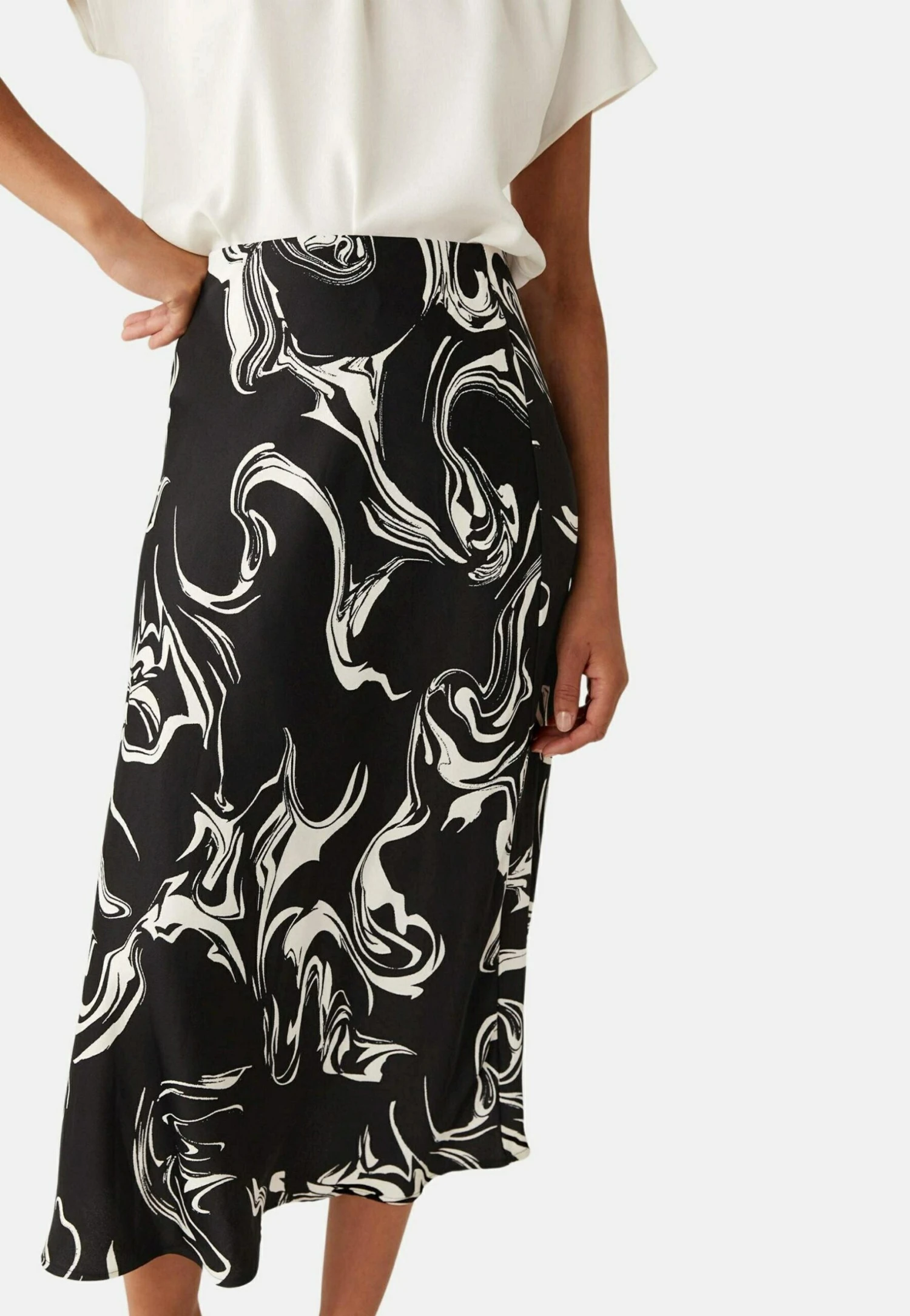 Marks & Spencer Satin Marble Print – A-Lijn Rok – Black Mix