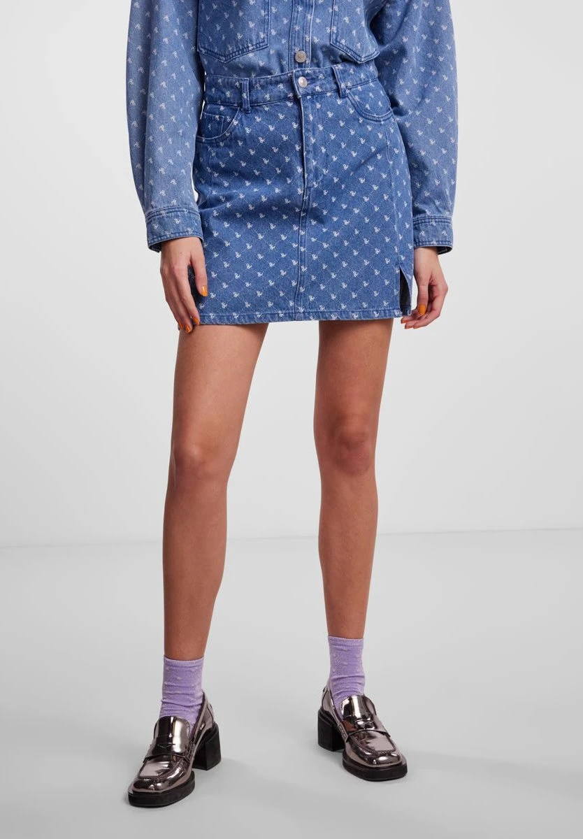 Pieces Pcnursel Hw Slit – Minirok – Medium Blue Denim/Aop