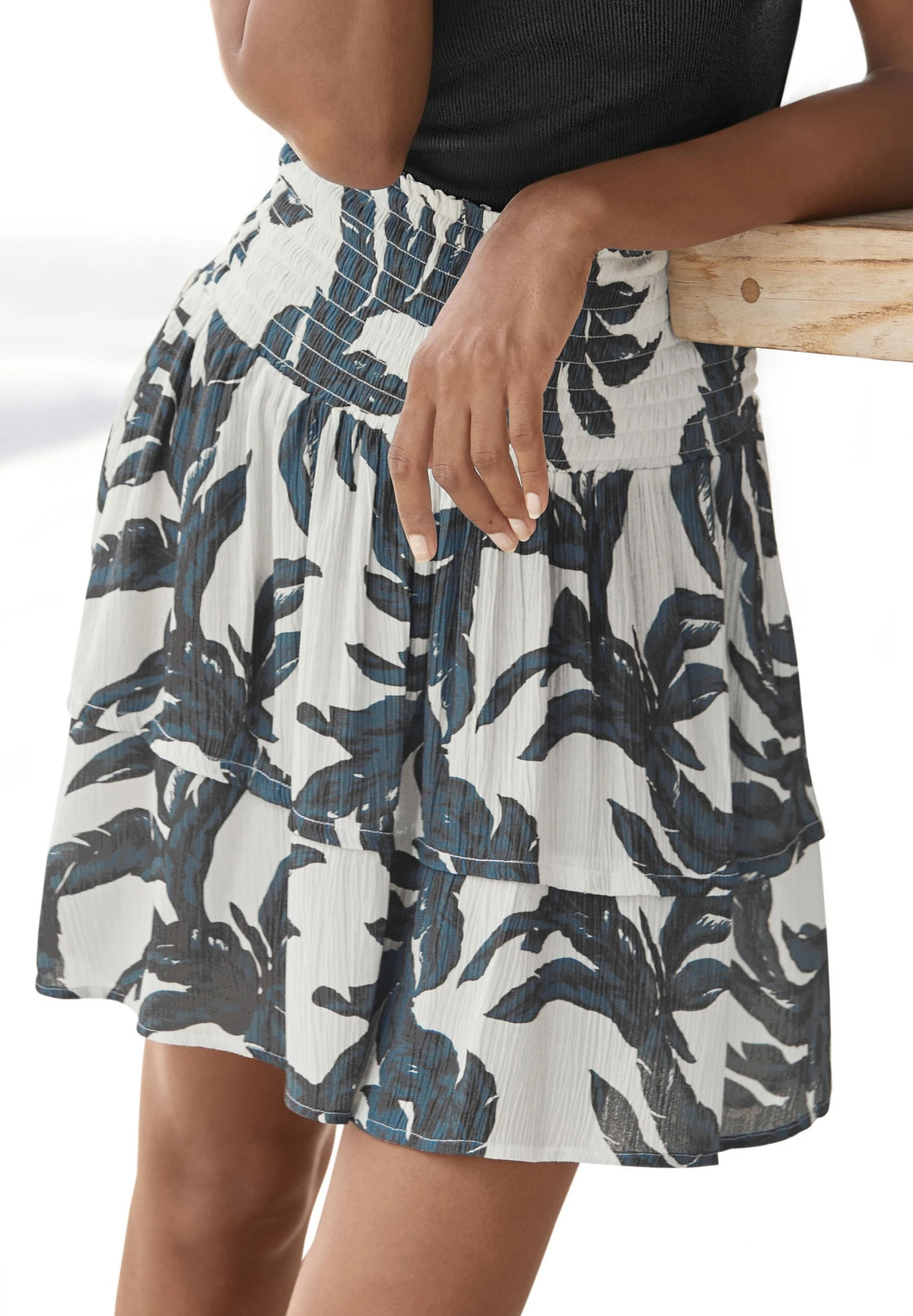 S.Oliver Crinkle – A-Lijn Rok – Sand Schwarz Bedruckt