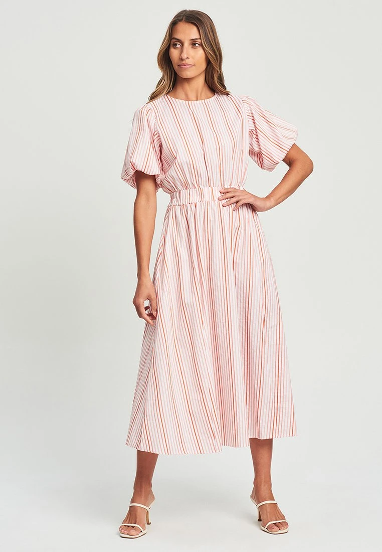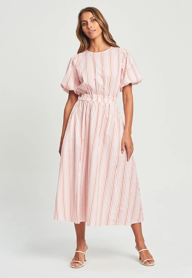 Stoic – Jurk – White And Coral Lurex Stripe