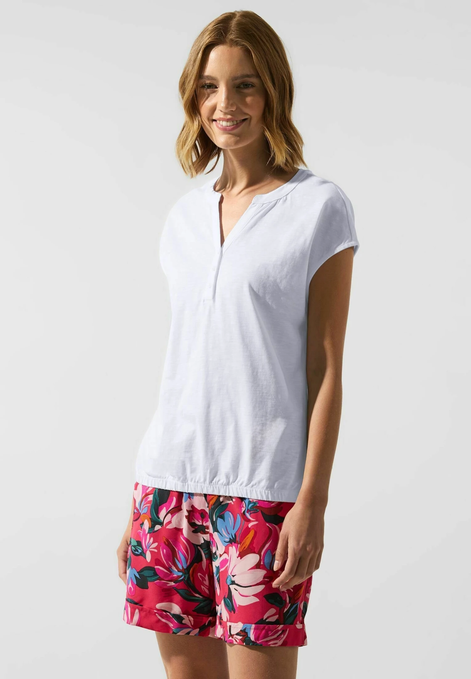 STREET ONE Mit Knopfleiste – T-Shirt Basic – Weiß